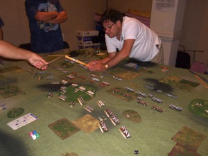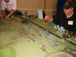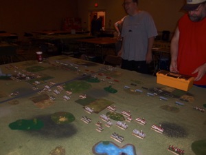 Also at Cold Wars 2013, James “Tank” Nickle ran a historical game using Bear Yourselves Valiantly. The game featured Romans vs. Carthaginians. All figures were Old Glory 10mm figures. The game was a narrow Carthaginian victory. Many of the players wanted to know when the rules would be available. Unfortunately, the rules won’t be available for at least a year.