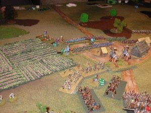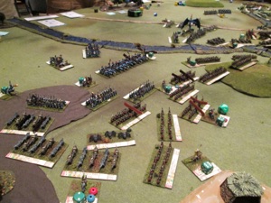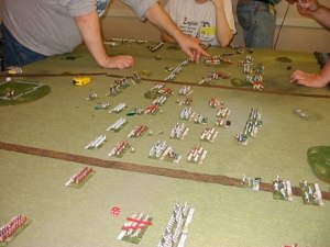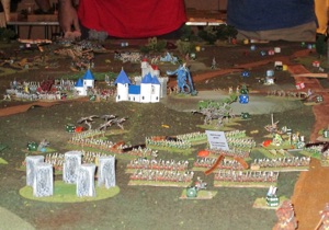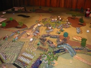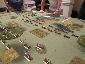 This is a long shot of the entire battle. We were pretty happy with the overall look of the game. We developed a point system. This was not meant for tournament play as much as to help GM’s get a rough, first-order approximation when designing scenarios.