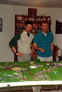 While these pictures pre-date Wellington Rules by about 18 years, they do show a Napoleonic game in progress. In those days we didn't have many figures, so we had the French and Russians versus the British in the game shown.