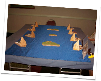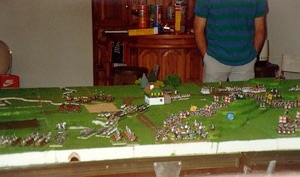 The Battle of Buena Vista as recreated with Santa Anna Rules at Cold Wars 98. The Mexicans marginally won the first game, the Americans smucked the Mexicans in the second game, and the Mexicans trounced the Americans in the third game. (Photos taken by Eric Schlegel)