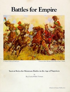Battles for Empire (BFE) was published in 1990. We were told by the major distributors that since no one had ever heard of us we might sell 300 copies of a Napoleonic rule book. We printed BFE with over 100 photographs (that were not just filler) and had a full-color cover with art by Keith Rocco. As it turns out we sold almost 3000 copies of the rules in the U.S., England, and Canada, and we had two printings.