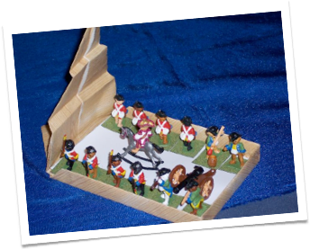 •West Point: At West Point, as a Plebe, I hooked up with a group of cadets who were playing Napoleonic miniatures with Captain, later Major, now Colonel, Lawson, a professor in the German language department. He had more than enough figures for all the games we played, but it wasn't long before we had each chosen a different nation and started painting a battalion at a time. I never pulled an "all-nighter" for school, but I pulled several trying to get one more battalion ready for the next day's battle. As the only plebe in the group, I got last choice of countries, being stuck with Britain -- the country I would have chosen as my first choice anyway.